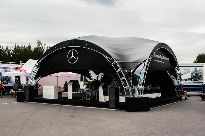 - Функциональные особенности: современные выставочные шатры оснащаются съемными стенками, системой вентиляции и освещения, что повышает комфорт посетителей и участников.